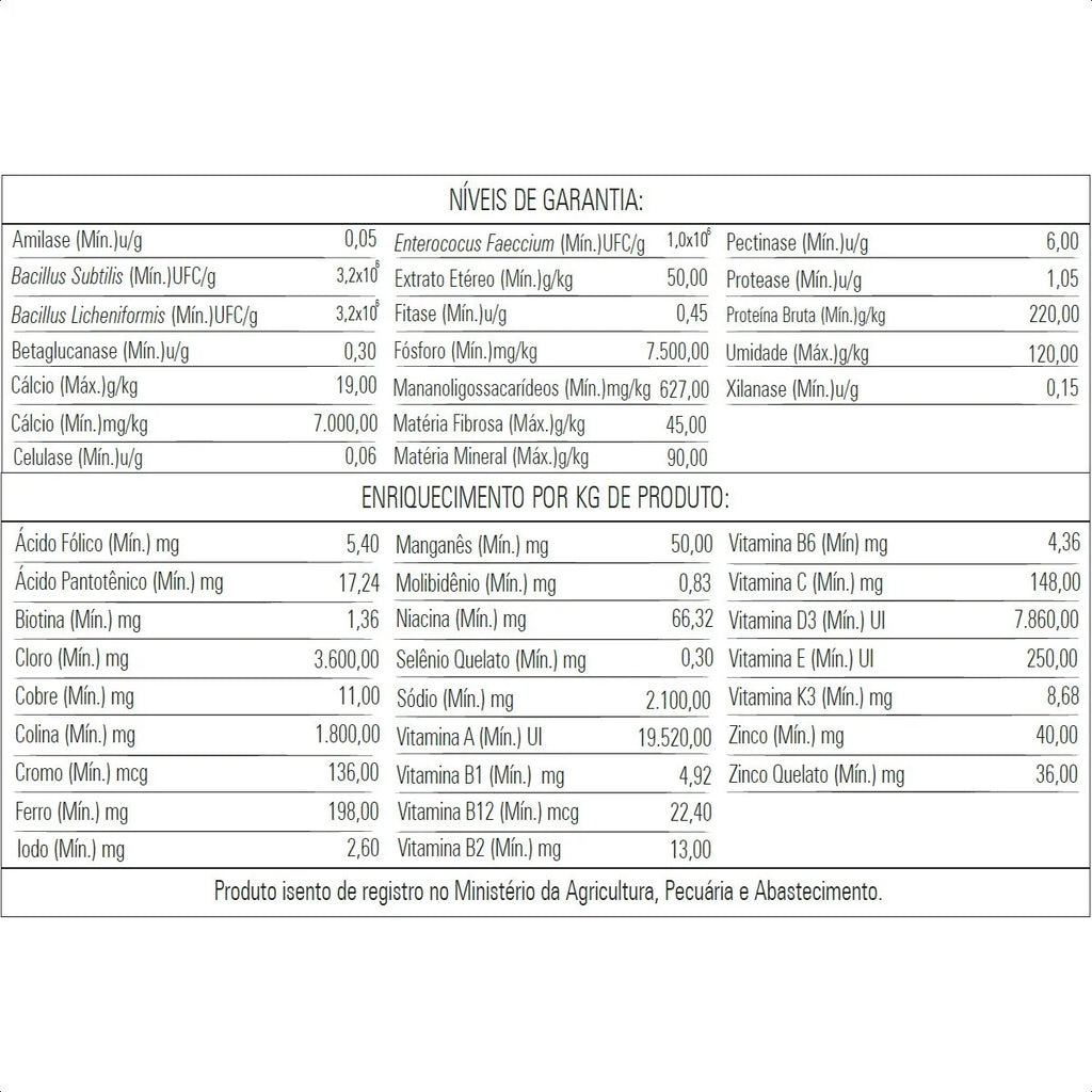 Sua fórmula completa estimula o crescimento saudável, fortalece o organismo e mantém a vitalidade das aves.