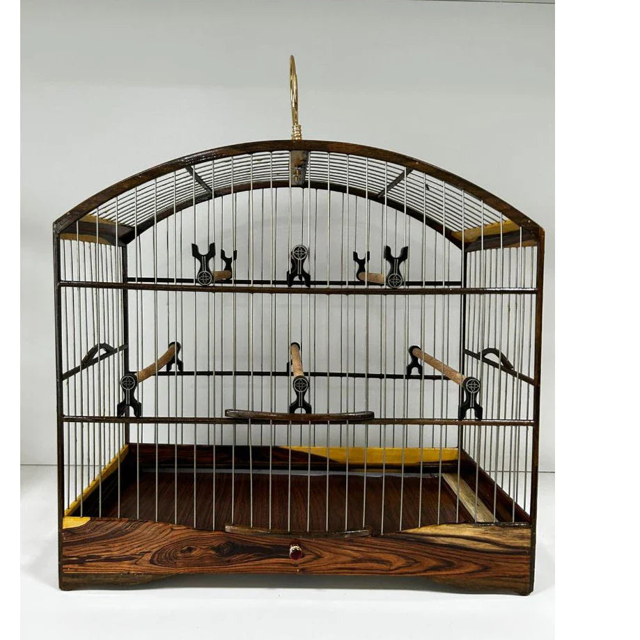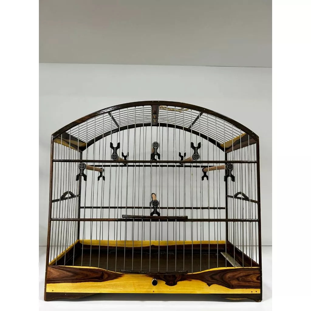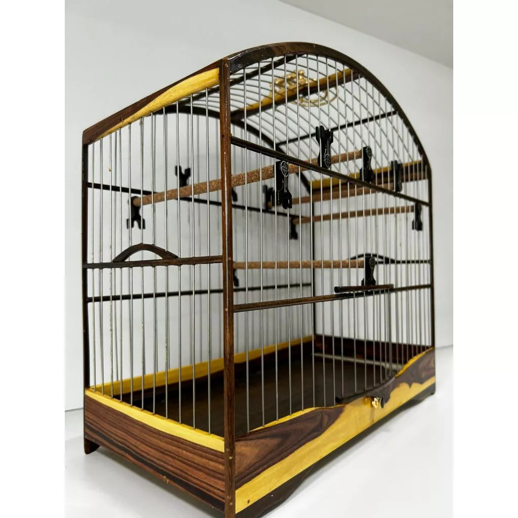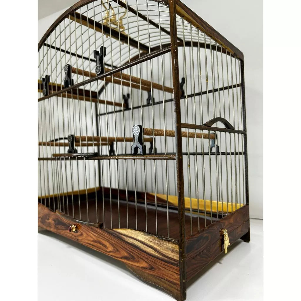 GAIOLA DE PASSEIO DE COLEIRO EM JACARANDÁ COM TALAS DE INOX C/ FUNDO FALSO